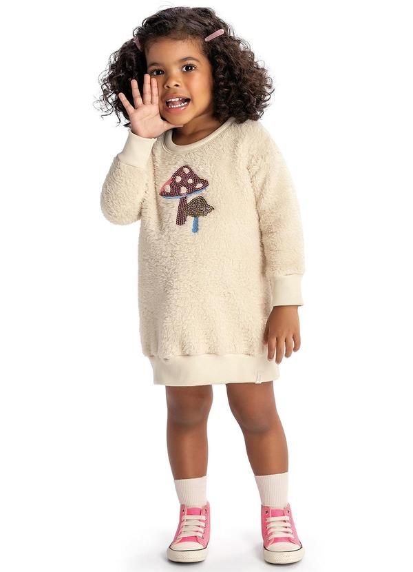 Elian - Vestido Infantil Menina Curto em Pelo Bege