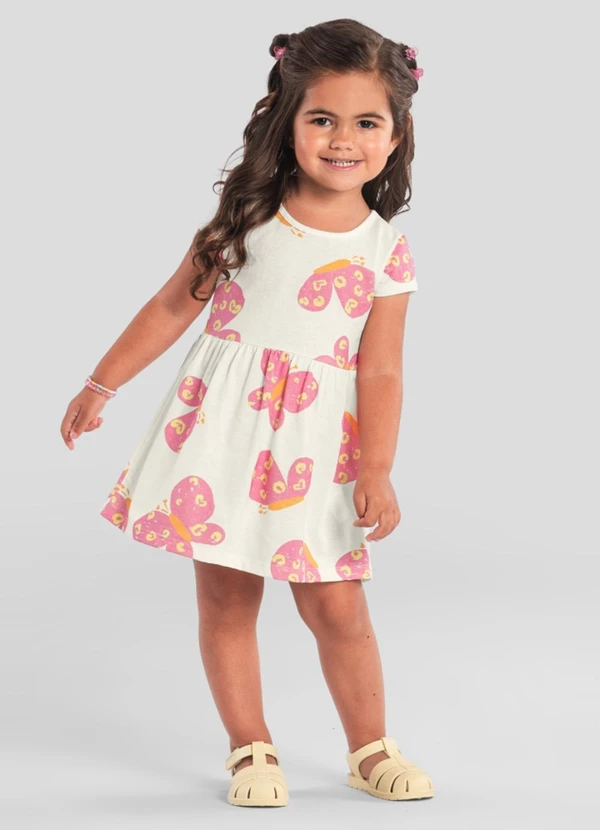 Brandili - Vestido Infantil Menina de Borboletinha Bege