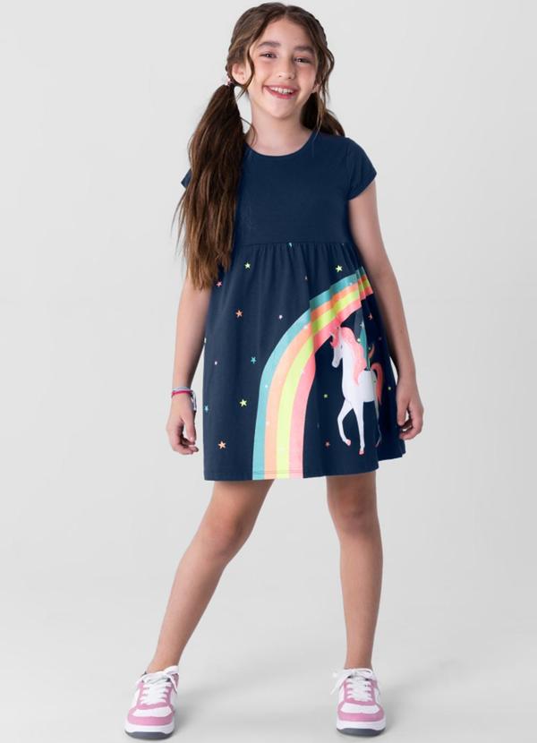 Brandili - Vestido Infantil Menina em Malha Azul