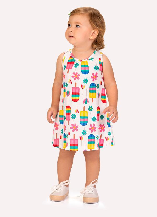 Kyly - Vestido Infantil Menina Picolés Branco