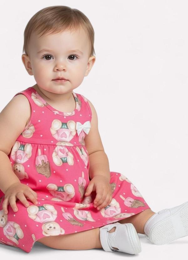 Kyly - Vestido Infantil Menina Ursinho Rosa