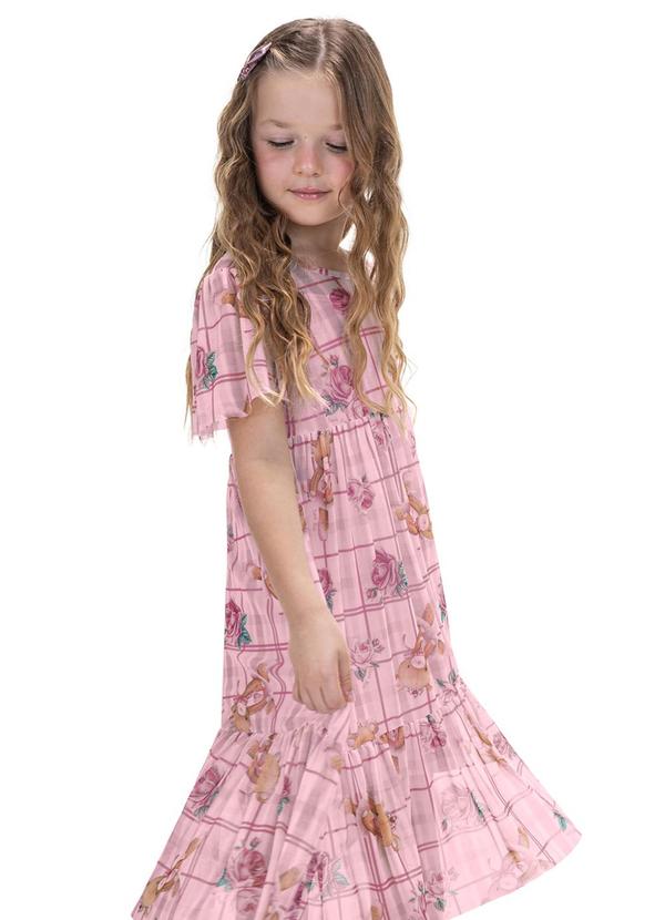Trick Nick - Vestido Infantil Midi com Sobreposição Rosa