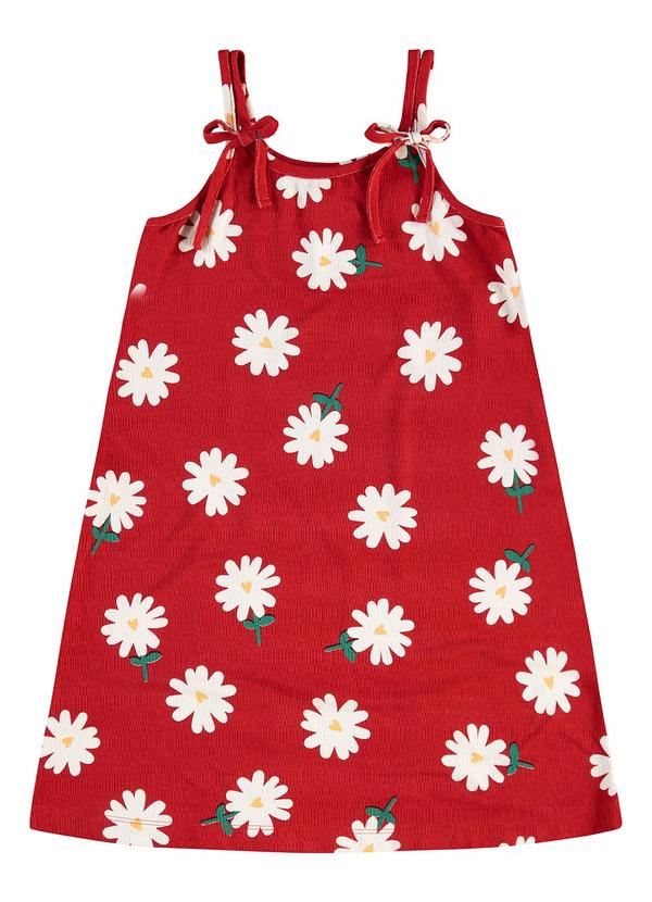 Rovi Kids - Vestido Infantil Visco Maquinetada Vermelho