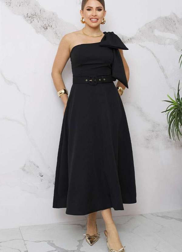 Miss Misses - Vestido Julia um Ombro So C/Laco e c/ Cinto Preto