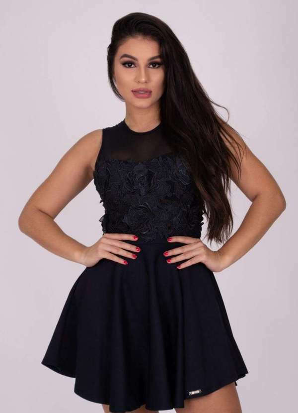 Limone - Vestido Limone Rodado com Bordado Preto Preto