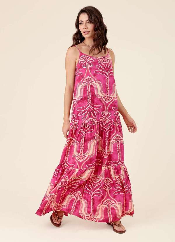 Pop Me - Vestido Longo Alca em Viscose Estampada Oasis Rosa