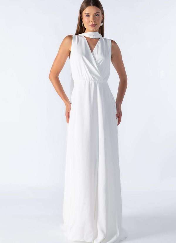 Lamis - Vestido Longo com Decote em V Off White