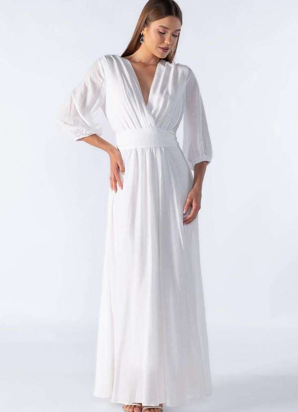 Lamis - Vestido Longo com Decote em V Off White