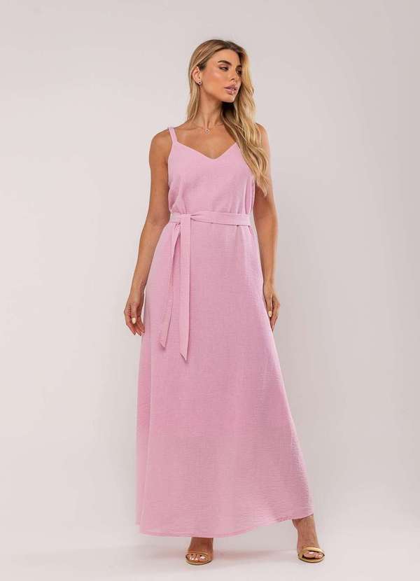 Salvatore Fashion - Vestido Longo com Faixa na Cintura Rosa