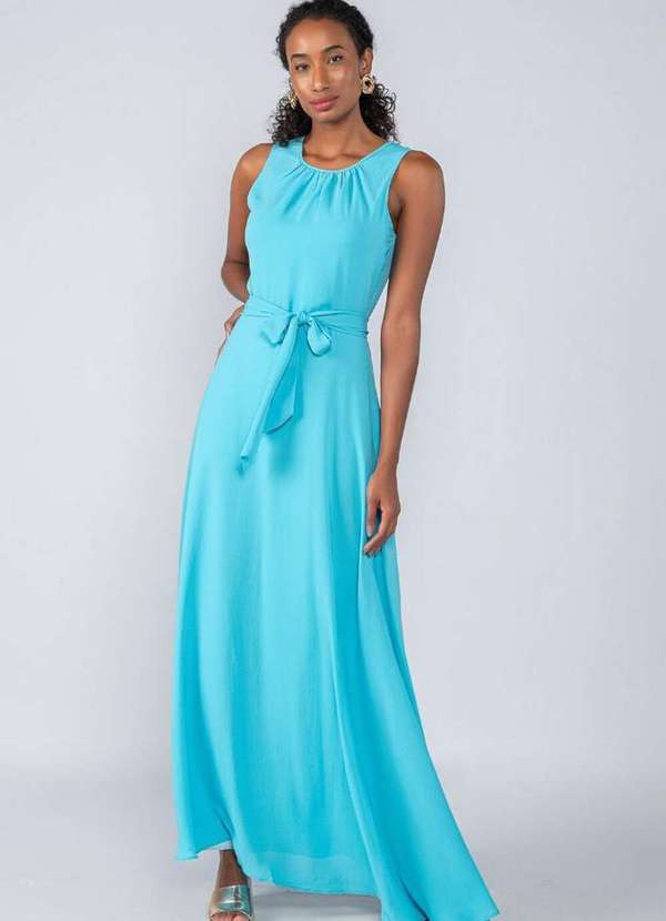 Lamis - Vestido Longo em Crepe Franzido Busto Azul