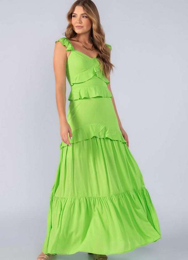 Lamis - Vestido Longo em Viscose com Babado Verde