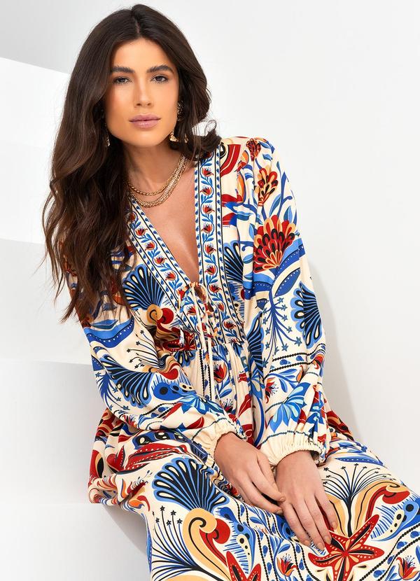 Farm - Vestido Longo Manga Sonho de Mar Bege