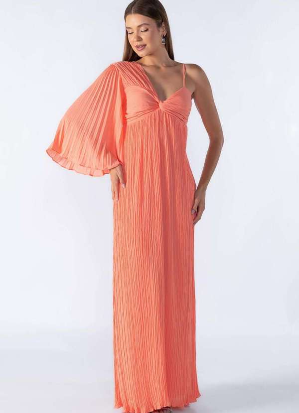 Lamis - Vestido Longo Plissado Manga Nula Salmao
