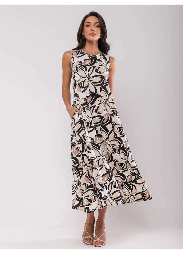 Salvatore Fashion - Vestido Longo Regata com Bolsos Estampado Bege