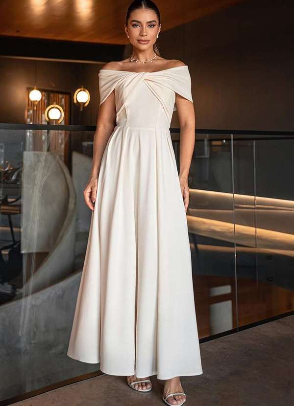 Dot Clothing - Vestido Longuete Dot Clothing Cleo Ombro a Ombro Branco