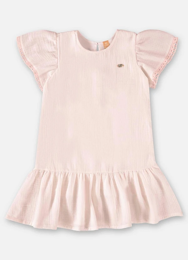 Up Baby - Vestido Manga Curta em Laise Rosa