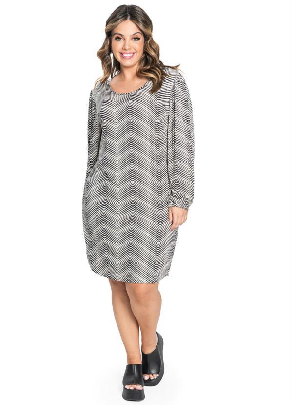 Rovitex Plus Size - Vestido Manga Longa Estampado Bege