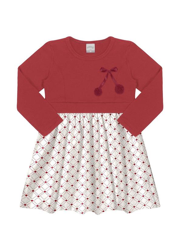 Alakazoo - Vestido Manga Longa Infantil Menina com Pompom Vermelho