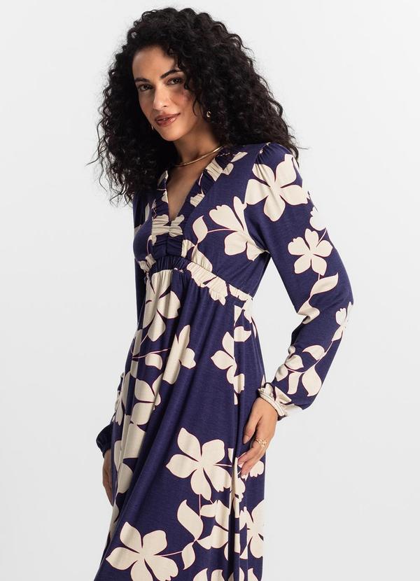 Rovitex - Vestido Manga Longa Midi Feminino Azul