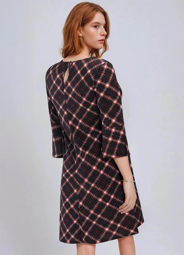 bonprix - Vestido Mangas 3/4 Xadrez Vermelho
