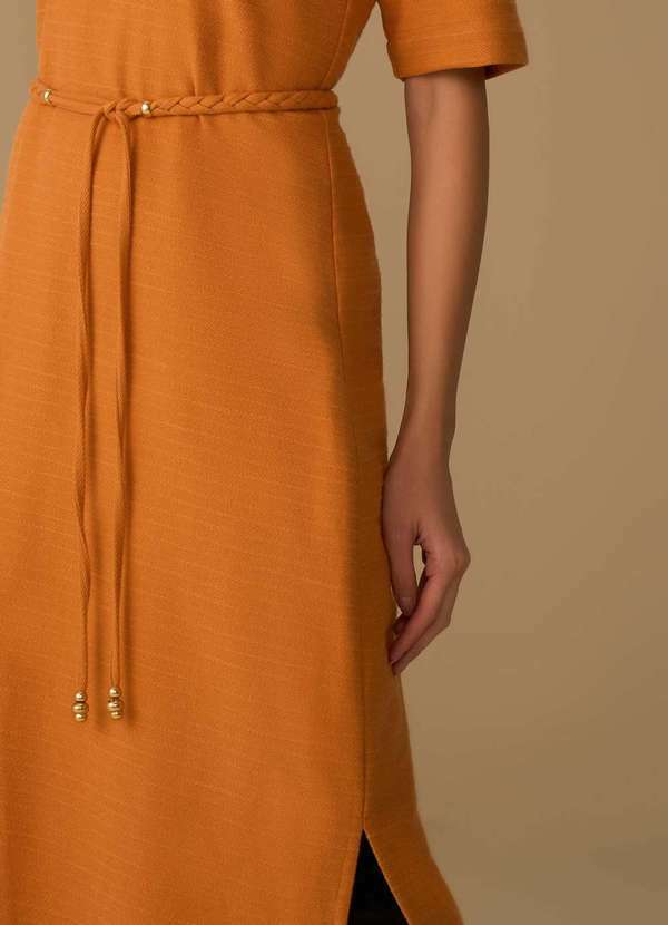 Maria.valentina - Vestido Maria.Valentina Solto Polo Manga Curta Midi Laranja Laranja