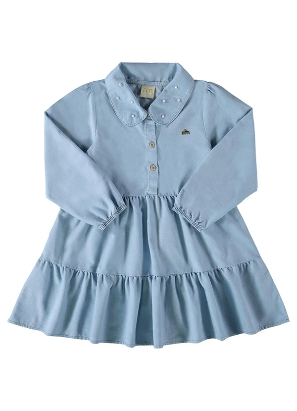 Milli e Nina - Vestido Menina Jeans Leve Pérolas Azul