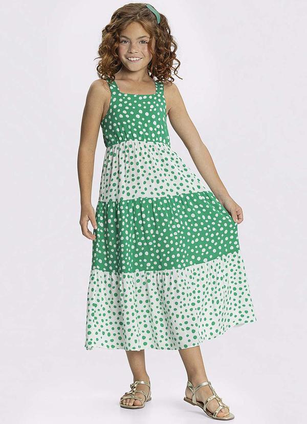 Alakazoo - Vestido Midi Alças Infantil Estampa de Poá Verde