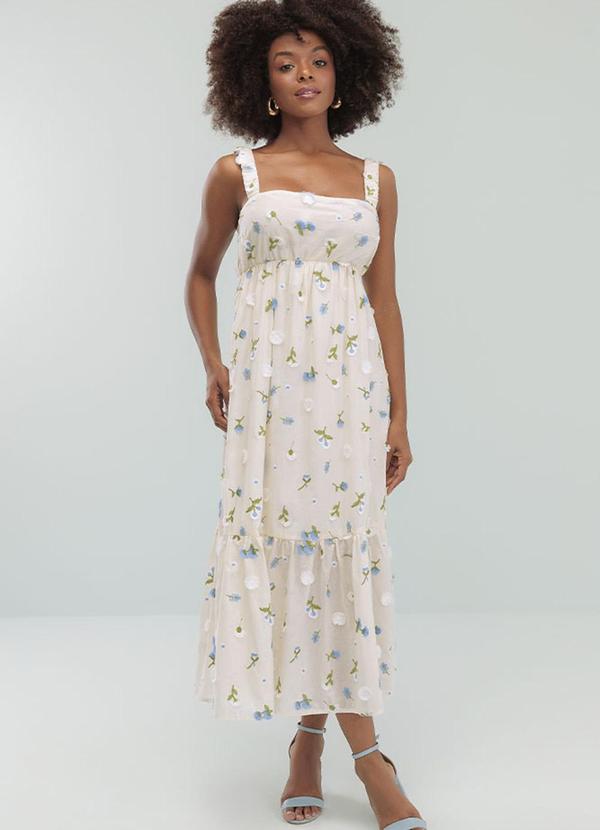 Angel - Vestido Midi Algodao c/ Bordado Branco