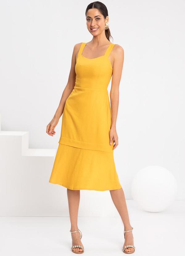 Lunender - Vestido Midi Chá Elástico Costas Linho Amarelo