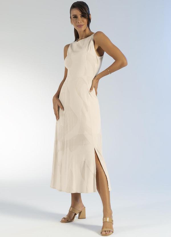 Gris - Vestido Midi com Estampa Rotativa Bege