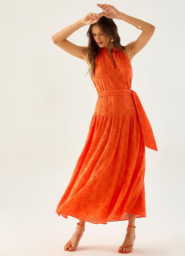Carlota Costa - Vestido Midi com Faixa Laranja