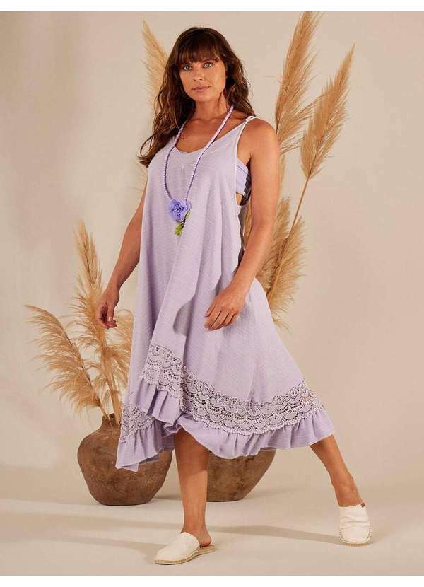 Yacamim - Vestido Midi de Alças com Renda na Barra Lilás Yacamim D4 Lilás