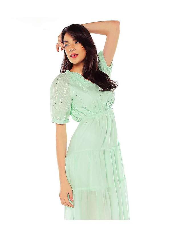 Sob - Vestido Midi de Laise de Algodão com Mangas Verde