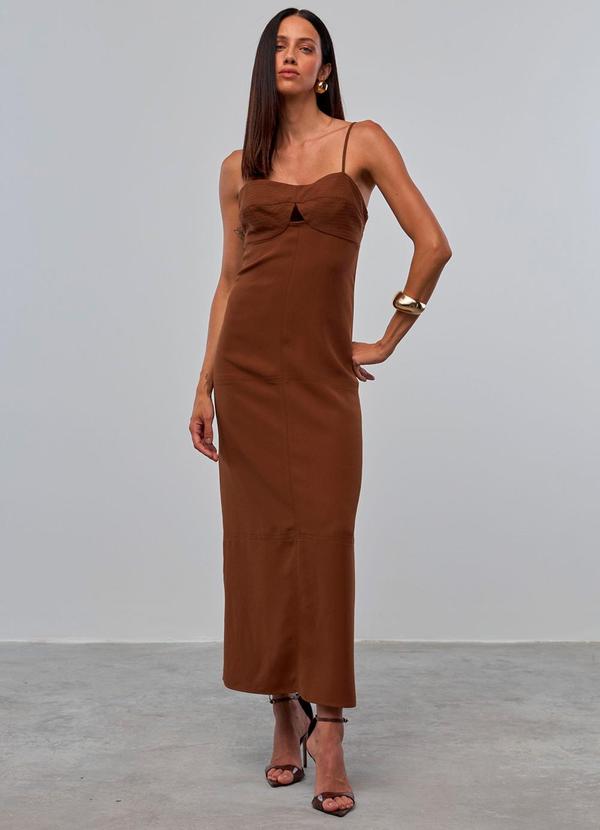 Carlota Costa - Vestido Midi Detalhe Busto Marrom