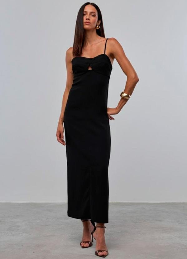 Carlota Costa - Vestido Midi Detalhe Busto Preto