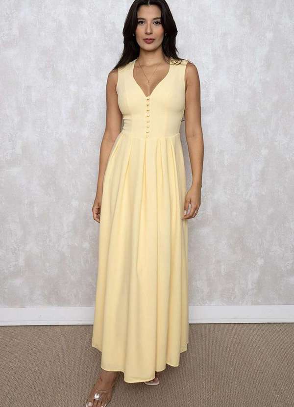 Dot Clothing - Vestido Midi Dot Clothing Clara Det Botoes Amarelo