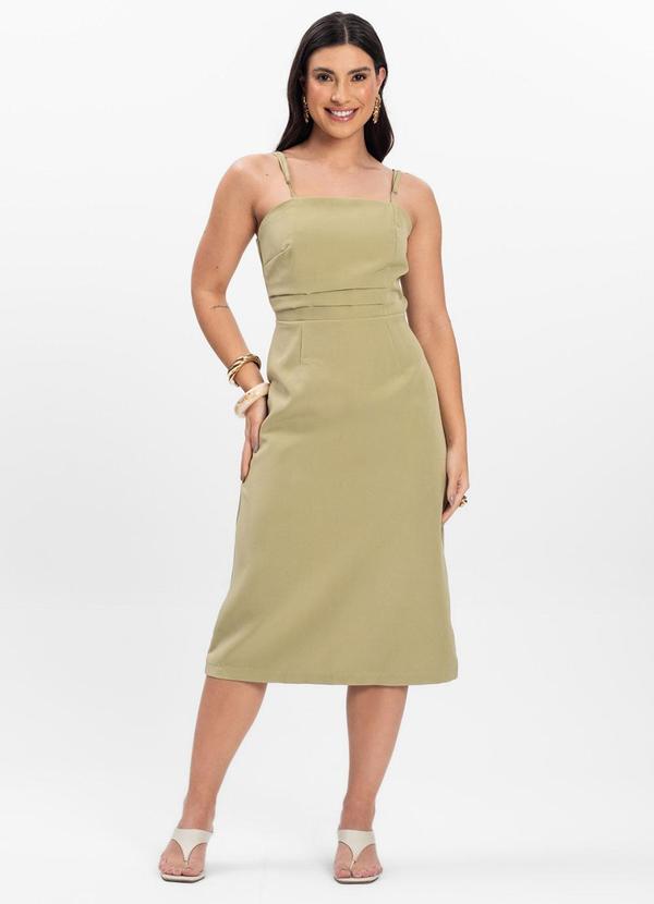 Rovitex - Vestido Midi em Alfaiataria Lisa Ji Verde