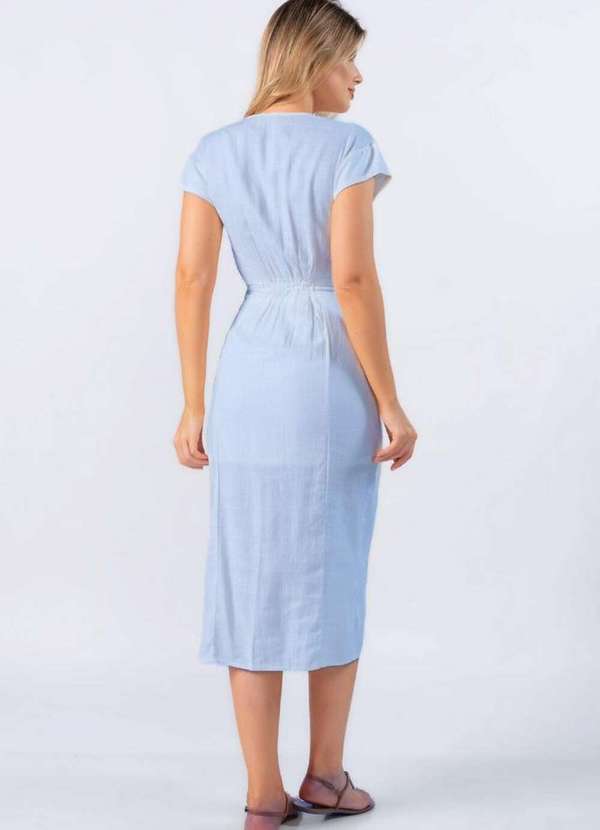 Lamis - Vestido Midi em Linho com Recorte Azul Claro
