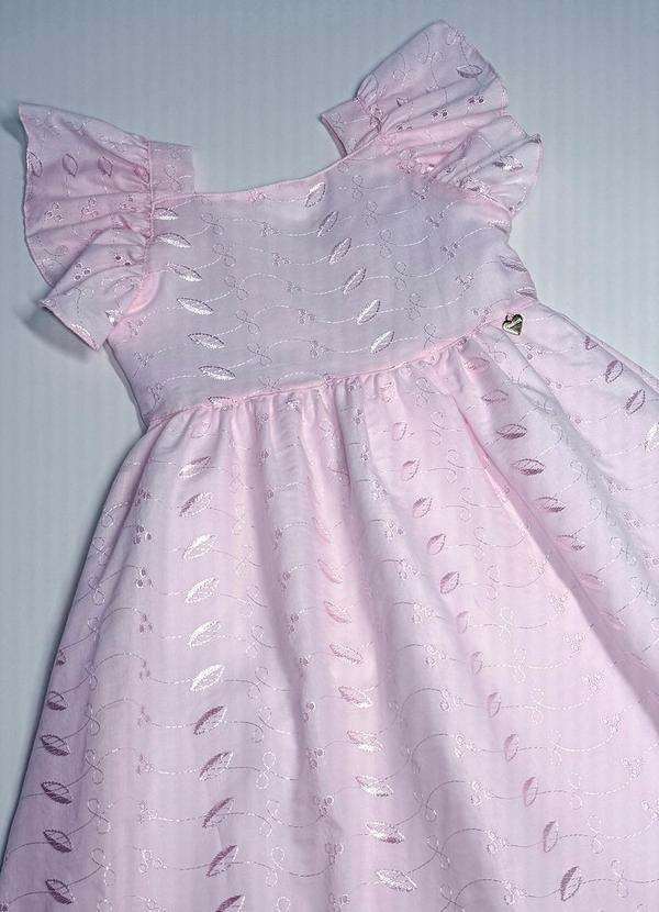 Pokótinha - Vestido Midi em Tecido Bordado Rosa