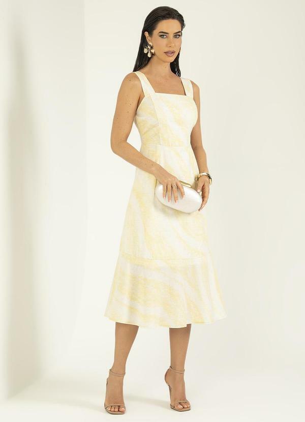 Gris - Vestido Midi em Tecido Fluido Amarelo Claro