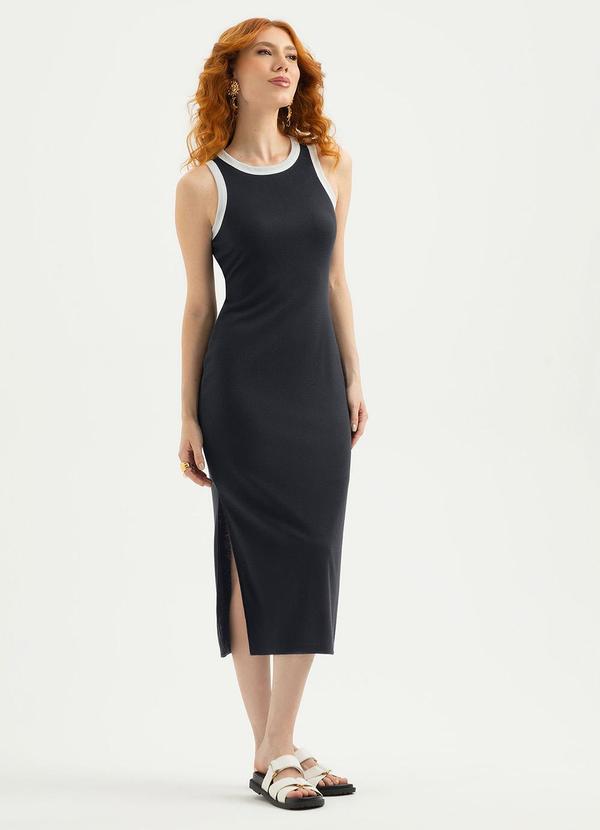 Cativa - Vestido Midi em Tecido Texturizado Preto