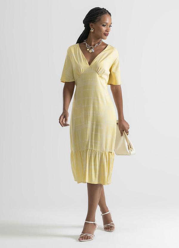 Cativa - Vestido Midi em Viscose Amarelo Claro