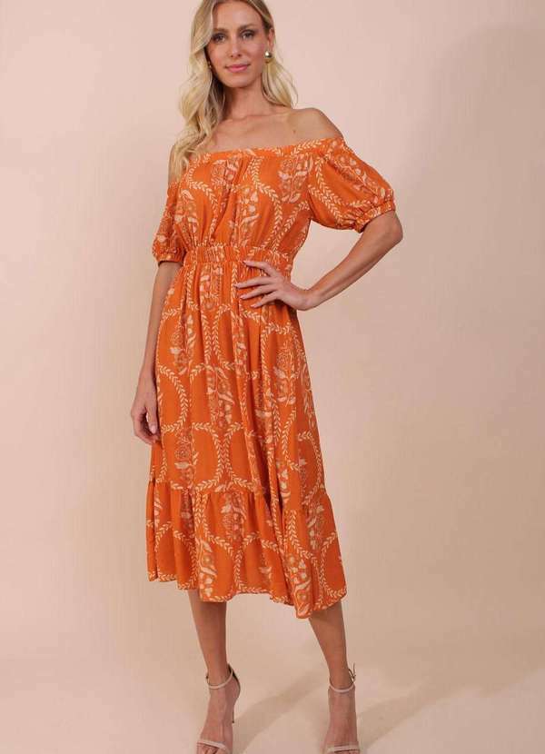 Pequia - Vestido Midi Flor de Canela Pequia Laranja