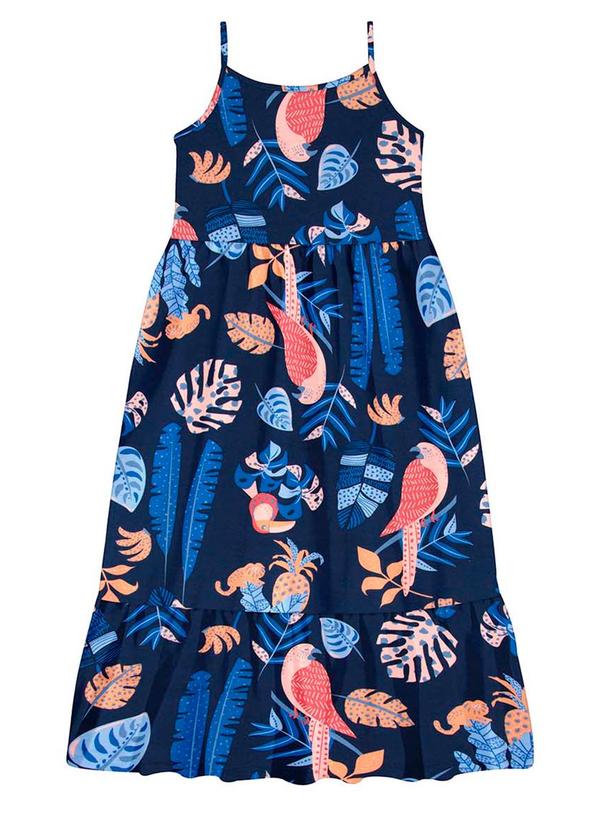 Alakazoo - Vestido Midi Infantil Alça Estampa FlorestaAzul