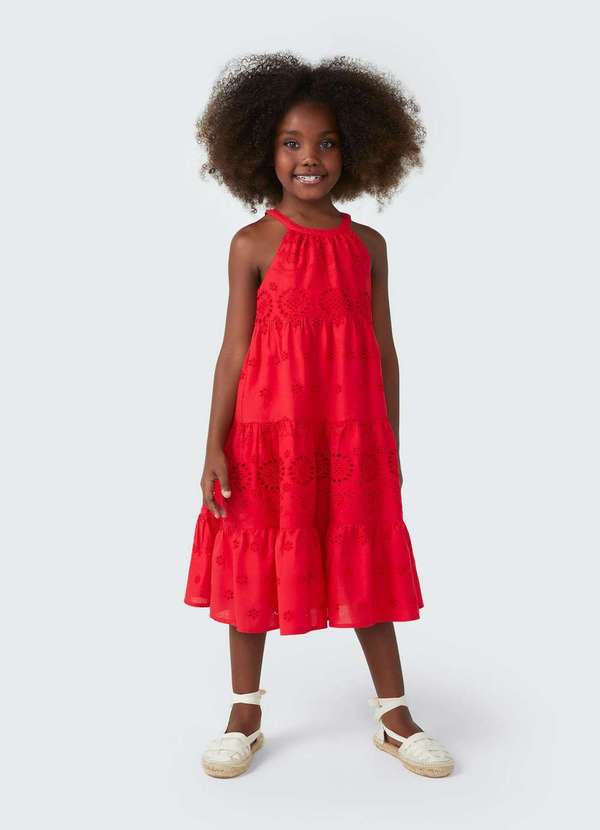 Hering - Vestido Midi Infantil com Gola Alta Vermelho
