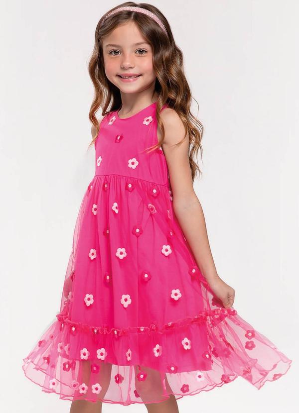 Trick Nick - Vestido Midi Infantil em Tule Bordado Rosa