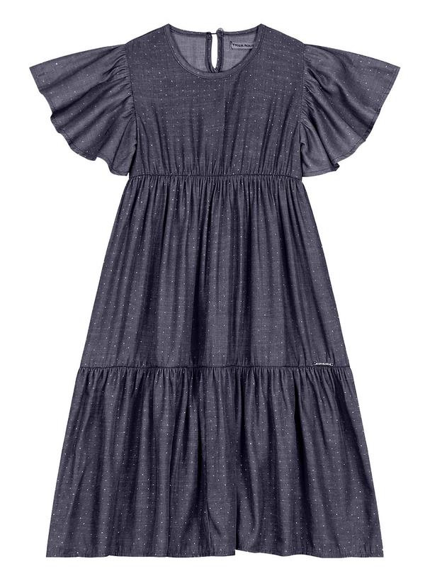 Trick Nick - Vestido Midi Liocel com Glitter Azul