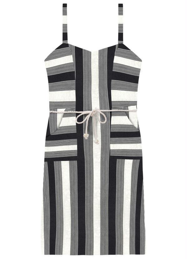 Lunender - Vestido Midi Listrado com Cinto Preto
