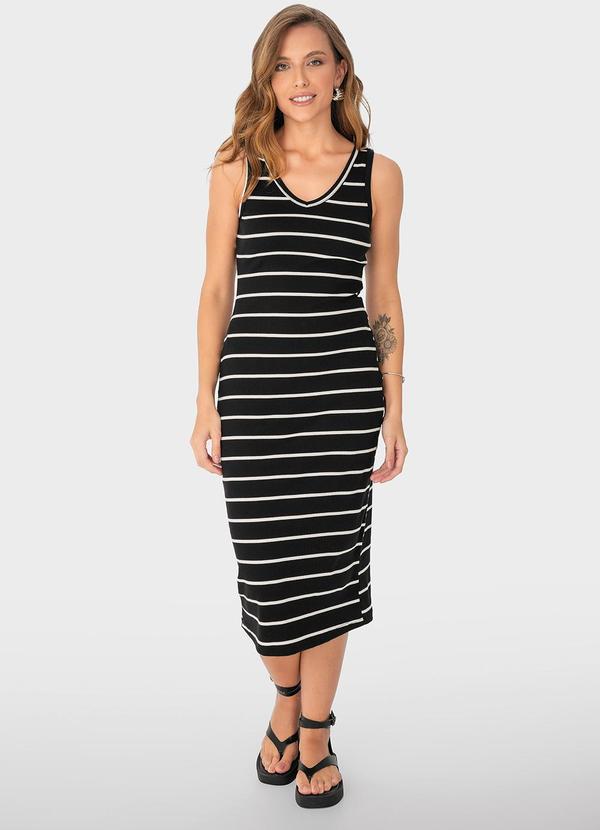 Malwee - Vestido Mídi Listrado Preto