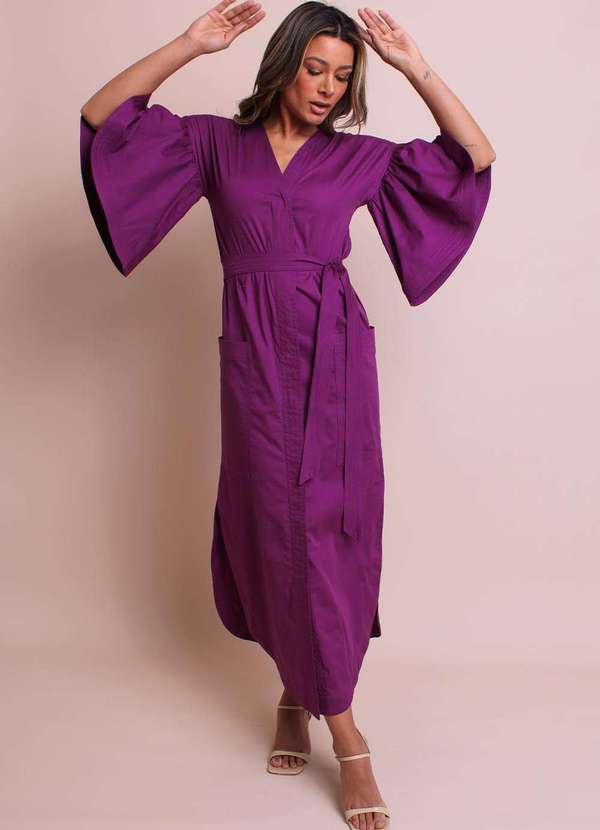 Labrava - Vestido Midi Manga Sino Roxo Labrava Roxo